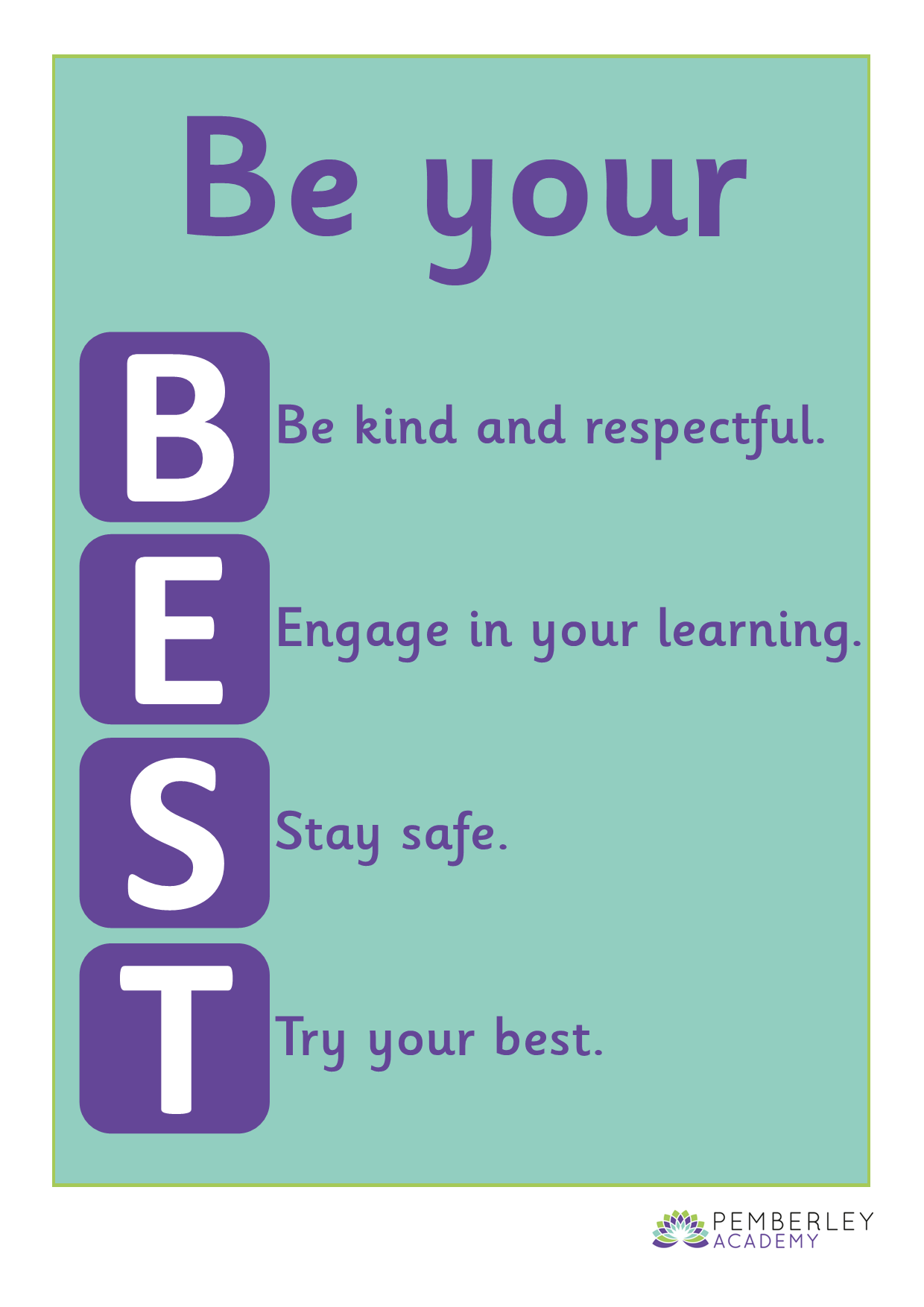 At Pemberley Academy, we believe every child deserves a safe, respectful, and engaging learning environment. Our behaviour expectations are built around our Be Your BEST principles: